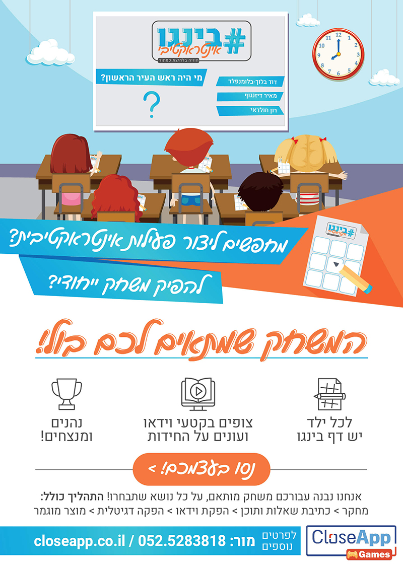 עם משחק בינגו מותאם אישית בתוכן, ובשאלות כל התוכן שהעירייה רוצה להעביר עובר בצורה מדהימה וישירה ואחרי המשחק כולם ידעו את התשובות.