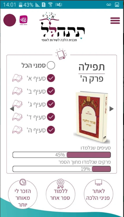 אפליקציה שמרכזת לבנות שירות לימוד יומי בצורה מסודרת בסדרת ספרי פניני הלכה.