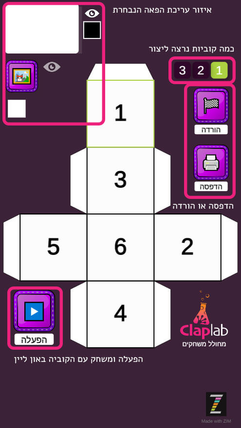 - ועכשיו ניתן – לשמור את הקובייה כתמונה, להדפיס את הקובייה או לשחק איתה באון ליין