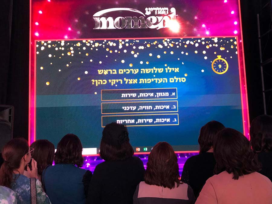 לכנס ענק של המודיע, התאמנו את משחק הקליקרים שלנו ל-7 משחקים שונים. המשחקים בוצעו על גבי מסכי ענק והמשתתפות בכנס בחרו שלטים שהיו מונחים ליד המסכים, שיחקו והתחרו אחת בשניה.