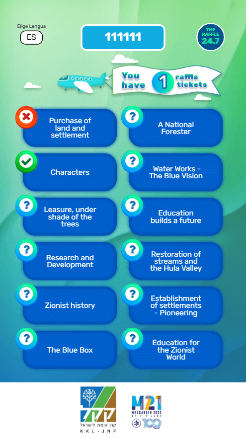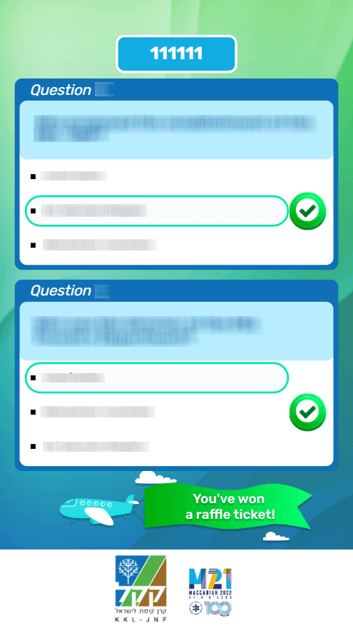 מענה נכון על שתי השאלות מזכה את העונים בכרטיס להגרלה על טיסה לישראל. ובעצם כל נושא "אוסף" למתחרים עוד ועוד כרטיסים להשתתפות בהגרלה.