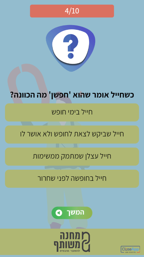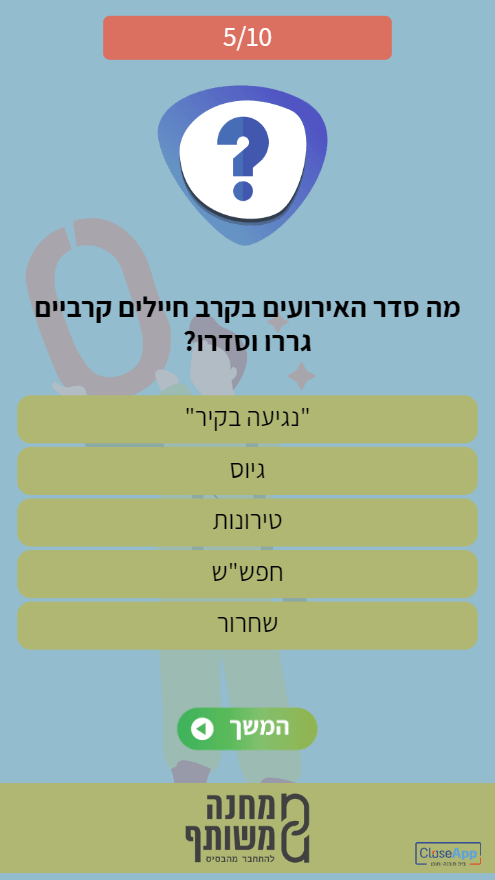 על מנת להעשיר את הפעילות ולגוון אותה יצרנו משחק טריוויה על צה"ל. גם במשחק הזה בוצעה תחרות בין המשתתפים וטבלת מובילים שהציגה את המנצחים.