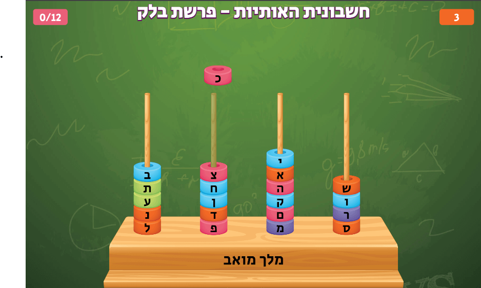 משחק חשבוניה חשבונית הזזת דיסקיות וכתיבת מילים על החוליות